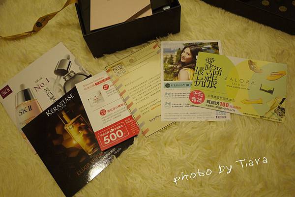有Glossybox的介紹以及本月禮盒的產品內容說明DM,還有折價卷耶!!!